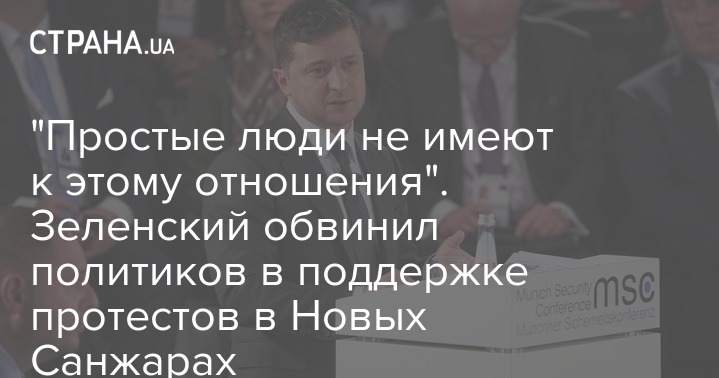 "Простые люди не имеют к этому отношения". Зеленский обвинил политиков в поддержке протестов в Новых Санжарах