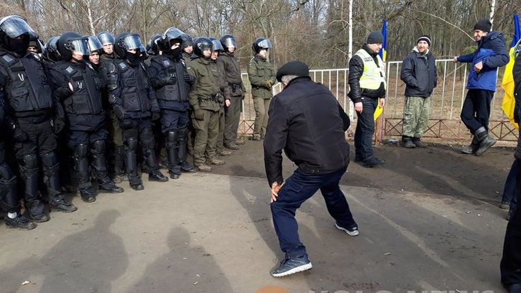 Бунтующие жители Полтавщины и полиция. Фото: kolo.news