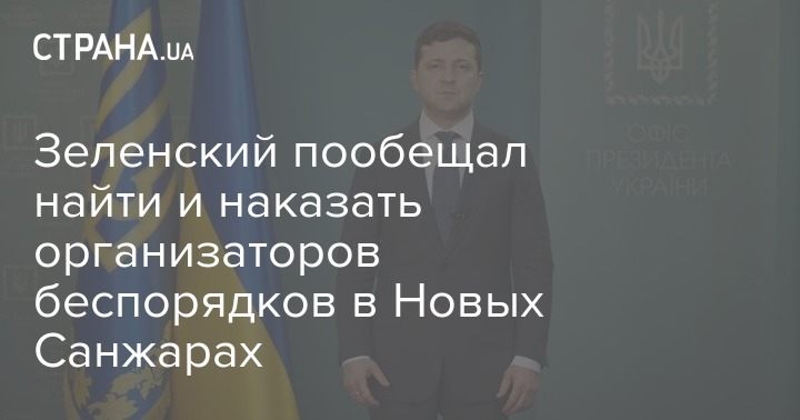 Президент Украины Владимир Зеленский в обращении по поводу беспорядков в Новых Санжарах  пообещал найти и наказать организаторов и подстрекателей  против размещения украинских и иностранных граждан в санаторий на Полтавщине.