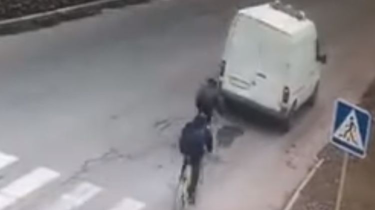 В Никополе подросток на велосипеде въехал в яму и оказался под колесами микроавтобуса. Видео