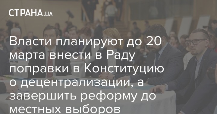 Власти планируют до 20 марта внести в Раду поправки в Конституцию о децентрализации, а завершить реформу до местных выборов