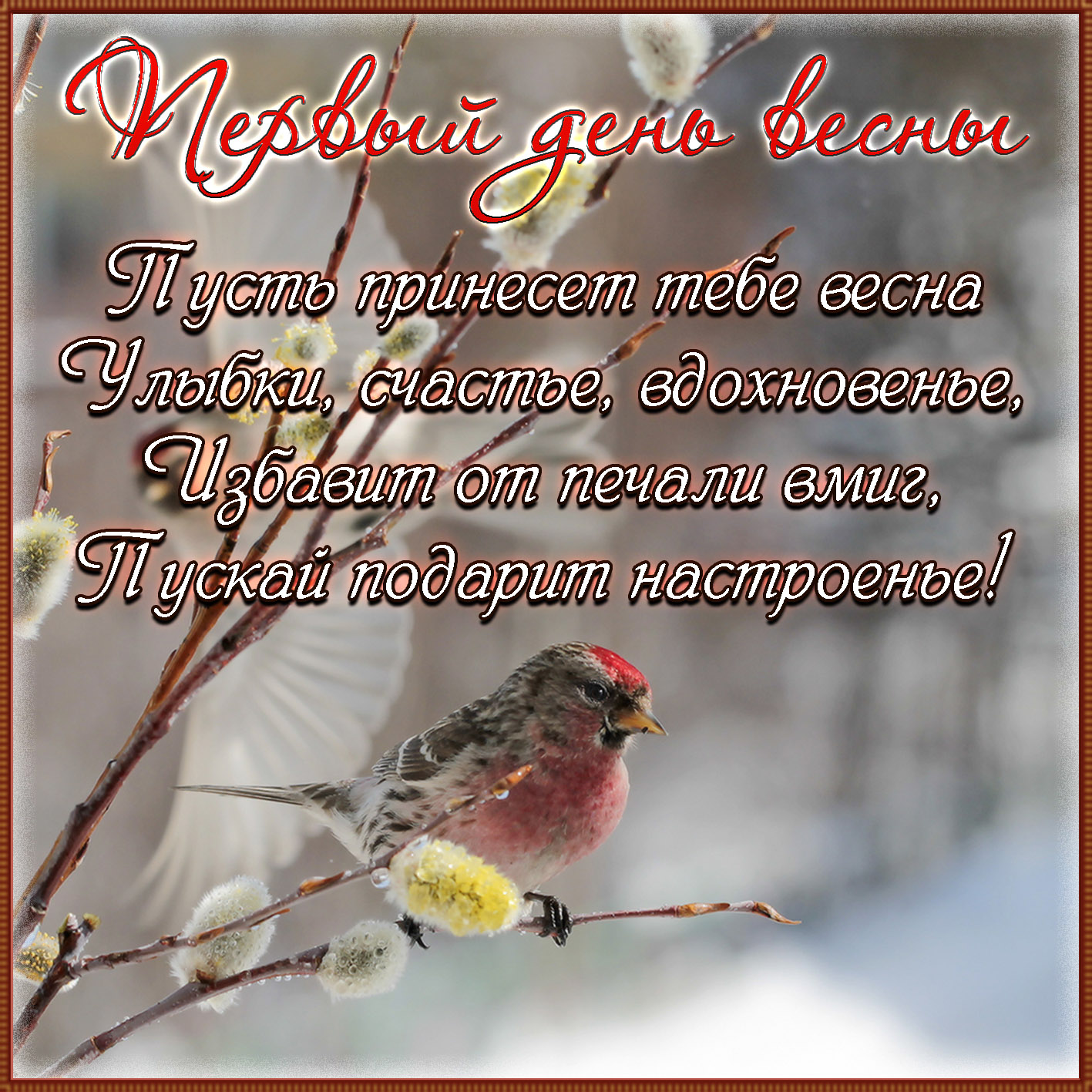 С 1 марта! Пусть весенние лучи наполняют душу, а весеннее вдохновение и бодрость - сердце.
