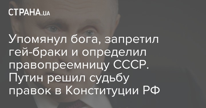 Также Владимир Путин внес ко второму чтению своего законопроекта об изменениях в Конституции поправку о признании брака союзом мужчины и женщины.