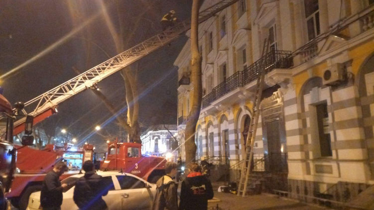 Пожар в историческом здании на Пушкинской в Одессе, фото - Думская