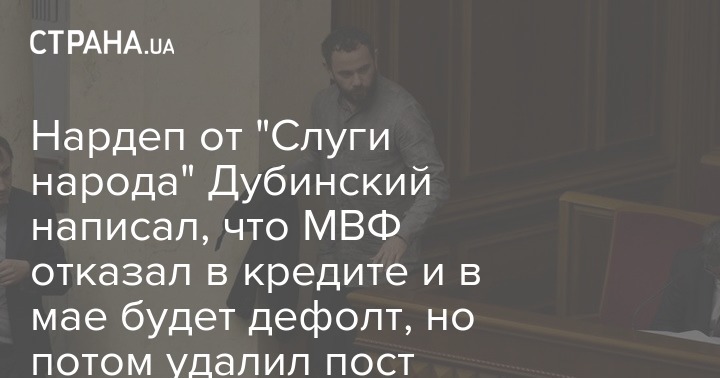 Народный депутат от парламентской фракции "Слуга народа" Александр Дубинский заявил, что Украину ждет дефолт уже в мае этого года, поскольку Международный валютный фонд отказался предоставлять нашей стране новый транш.