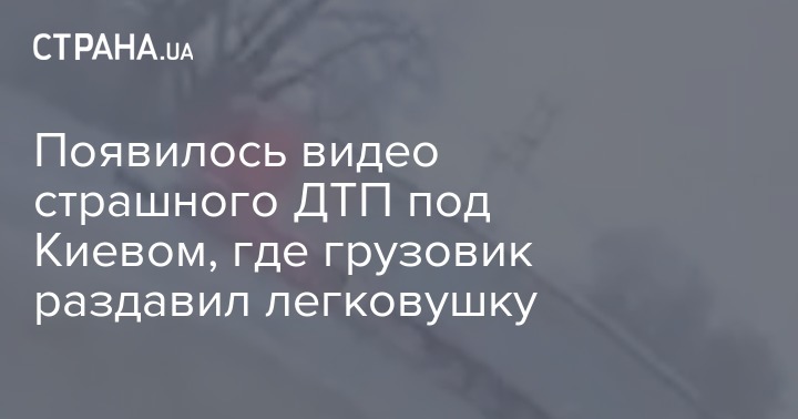 Появилось видео страшного дтп под Киевом, где грузовик раздавил легковушку. Скриншот из видео