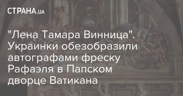 Украинские туристы "прославились" благодаря вандализму. Посетители Папского дворца Ватикана обнаружили коряво нацарапанные имена двух жительниц Винницы на фреске величайшего представителя эпохи Возрождения Рафаэля Санти.