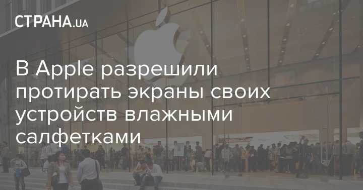 Компания позволила протирать экраны iPhone, iPad и iMac влажными салфетками. Рекомендуется протирать жесткие и непористые поверхности гаджетов 70% изопропиловым спиртом или салфетками Clorox Disinfecting Wipes.