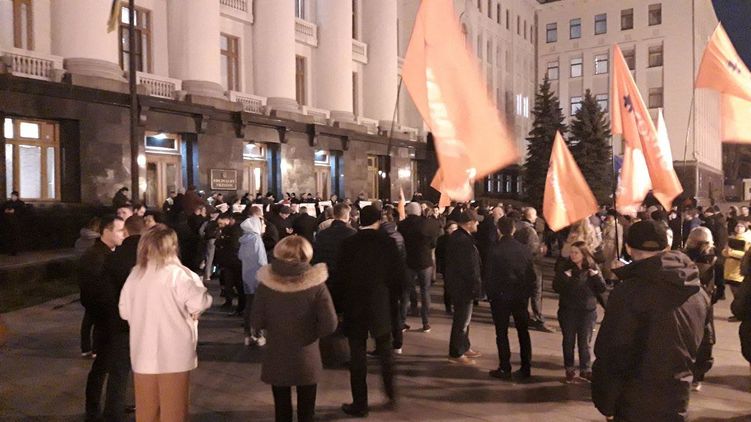 По оценке журналиста, сейчас под Офисом Зеленского собрались около 300 сторонников партии "Голос". Люди стоят с флагами политсилы. Также там присутствуют примерно десять представителей ВО "Свобода".