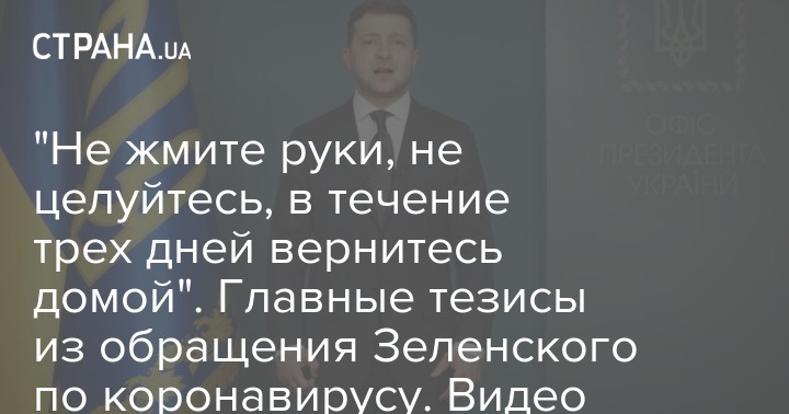 Зеленский также призвал мыть руки, не здороваться за руку и не целоваться в щеку. А также соблюдать "информационную гигиену" - не слушать "интернет-аферистов", которые хотят посеять в Украине вирус паники.