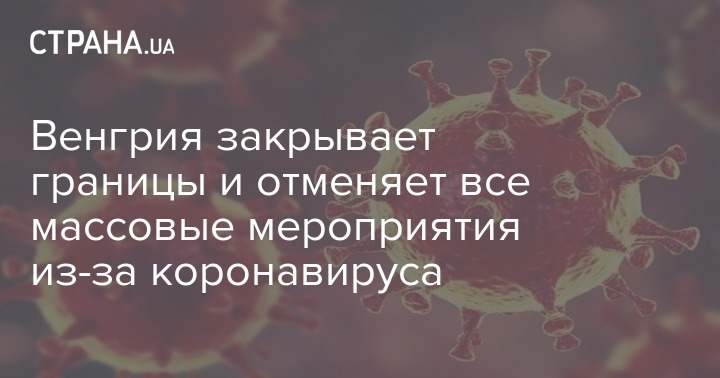 Власти Венгрии объявили о закрытии границ страны в рамках сдерживания распространения коронавируса Covid-19, а также отмене всех массовых мероприятий. Кроме того, будут закрыты все кинотеатры и клубы.