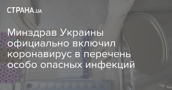 Минздрав Украины официально включил коронавирус в перечень особо опасных инфекций