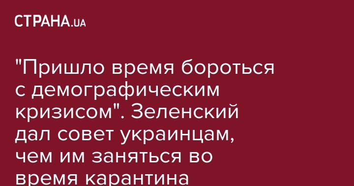 "Пришло время бороться с демографическим кризисом". Зеленский дал совет украинцам, чем им заняться во время карантина