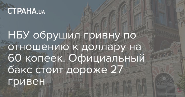 НБУ обрушил гривну по отношению к доллару до 27,03. Фото: НБУ