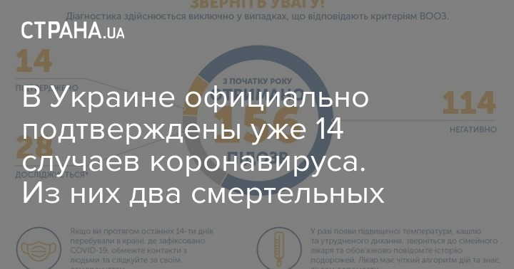 В Украине официально подтверждены уже 14 случаев коронавируса. Из них два смертельных