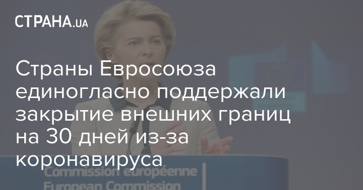 Страны Евросоюза поддержали предложение Еврокомиссии на 30 дней закрыть границы сообщества для иностранцев из-за распространения коронавируса. Решение было поддержано единогласно.