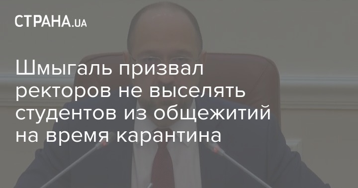 Премьер-министр Украины Денис Шмыгаль призвал руководителей образовательных учреждений не выселять студентов из общежитий на время карантина, а наоборот - способствовать тому, чтобы они оставались. Особенно это касается тех, кто приехал с оккупированных территорий.
