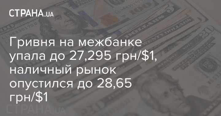 Курс гривни на межбанке упал до 27,295 грн/$1. Фото: "Страна"