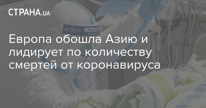 Европа обошла страны Азии по количеству смертей от коронавируса на более чем 40 человек.  По данным мониторинга BNO News, всего в Азии от пневмонии COVID-2019, вызванной коронавирусом, умерло 3384 человека. А в Европе число погибших превысило 3,4 тысячи человек.