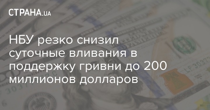 НБУ резко снизил суточные вливания в поддержку гривни до 200 миллионов долларов