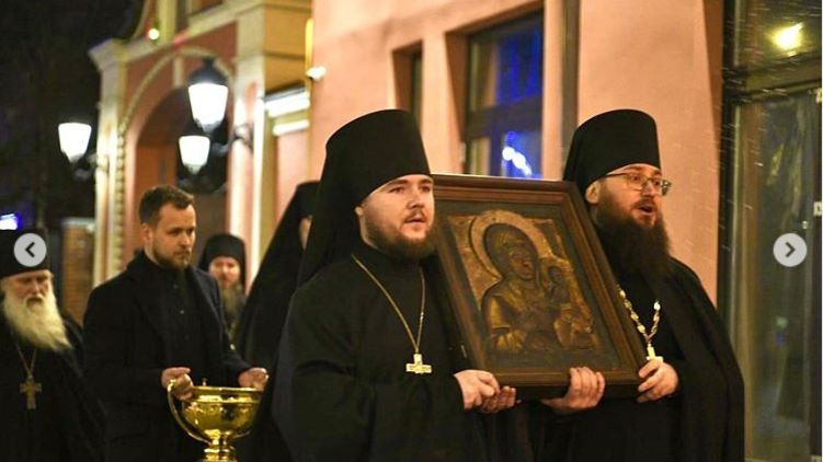 Вчера иноки прошли по окружающим монастырь тротуарам с древней Влахернской иконой Богоматери. Они возносили молитвы и окропляли территорию обители и окружающие ее стены святой водой. Кроме 8 насельников монастыря, в крестном ходе больше никто не принял участие.