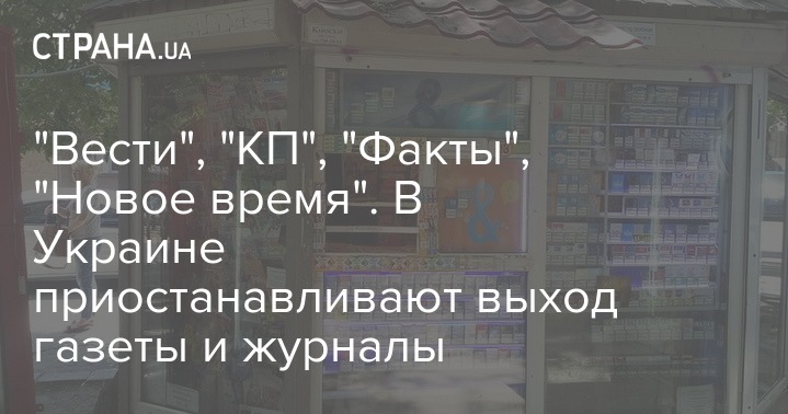 Перестанет на период карантина выходить и газета "Факты". Ее главред Александр Швец заявил об этом в Facebook. "Сегодня ''Факты" временно приостановили выход газеты. Такого в моей редакторской работе ещё не было ни разу. А что делать?....Выпускать газету, не имея возможности её затем распространять, просто нелепо. Газетные киоски закрылись. Большие и не очень большие базары в это карантинное время тоже приостановили свою работу. Входы в метро, возле которых оптовики продавали те немногие ещё продолжавшие выходить газеты, тоже никому теперь не нужны - метро, как известно, не работает", - отметил Швец.
