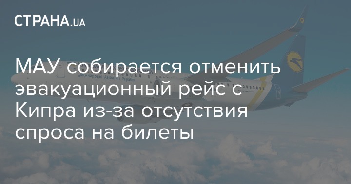 Авиакомпания "Международные авиалинии Украины" (МАУ), вероятно, отменит спецрейс для эвакуации украинцев с Кипра, поскольку отсутствует спрос на билеты со стороны оставшихся в республике е граждан Украины. Об этом сообщает консульский отдел посольства Украины в Республике Кипр в Facebook.