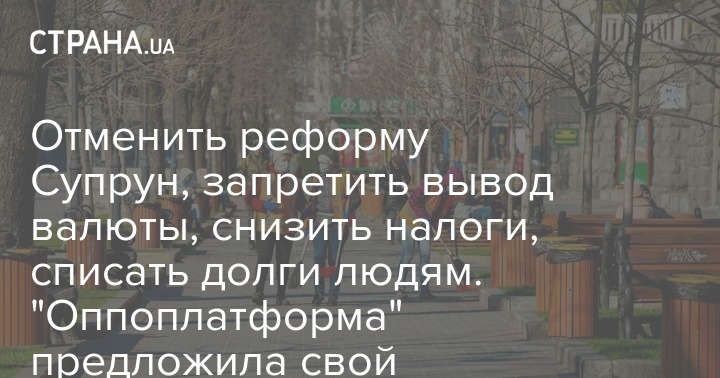 Отменить реформу Супрун, запретить вывод валюты, снизить налоги, списать долги людям. "Оппоплатформа" предложила свой антикризисный план