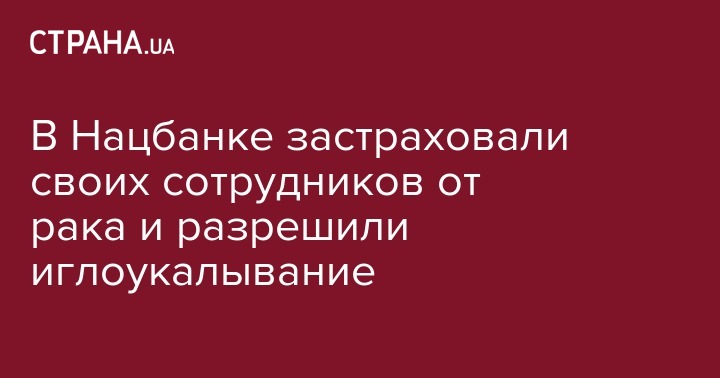 Национальный банк Украины оформил своим сотрудникам страховку почти на 30 млн и включил в нее ряд нестандартных услуг. Об этом сообщают "Наши Гроши" со ссылкой на издание "Вестник государственных закупок".
