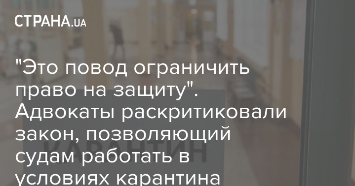 В адвокатском сообществе раскритиковали закон №3276, который позволяет регулирует работу судей во время карантина. По словам адвоката фирмы Credence Натальи Дрыгваль, он ограничивает право людей на защиту.