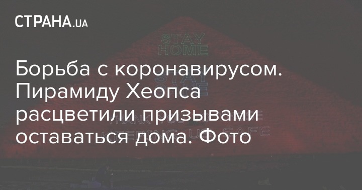 Борьба с коронавирусом. Пирамиду Хеопса расцветили призывами оставаться дома. Фото