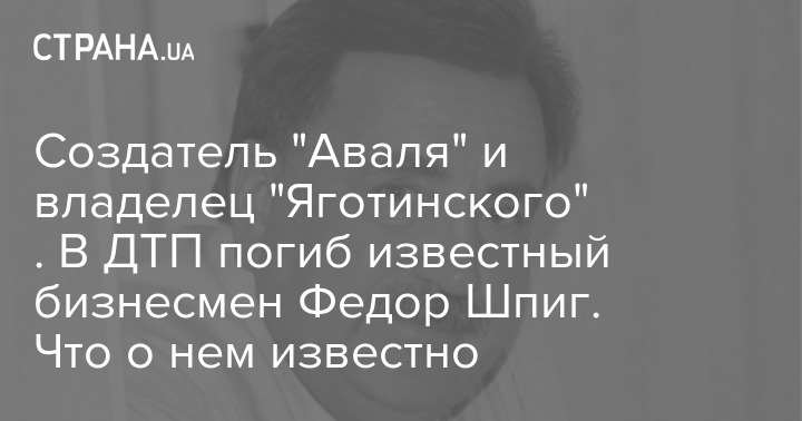 В Житомирской области 31 марта погиб известный украинский бизнесмен Федор Шпиг. О его гибели сообщили СМИ, официального подтверждения этой информации пока нет. Но источники "Страны" говорят, что Шпиг действительно попал в смертельное ДТП.