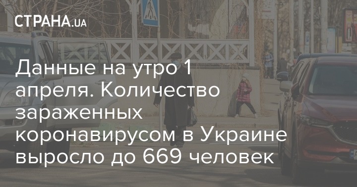 В Украине по состоянию на утро 1 апреля зафиксировано 669 случаев заражений коронавирусом Сovid-19. При этом у 120 пациентов инфекция была обнаружена за последние сутки.