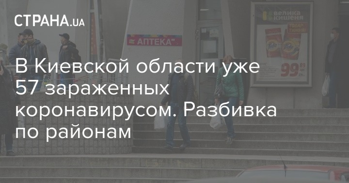 Из 57 случаев заражения коронавирусом в Киевской области, которые подтверждены на утро 1 апреля, больше половины приходится на два ближайших к столице района. 19 случаев в Обуховском районе и 12 - в Киево-Святошинском.