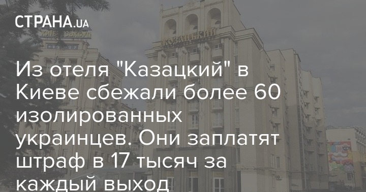 Из отеля "Казацкий" сбежали более 60 изолированных украинцев, прибывших из-за границы. Заместитель главы Министерства внутренних дел Антон Геращенко заявил, что все, самовольно покинувшие обсервацию, будут платить штраф в размере 17 тысяч гривен.
