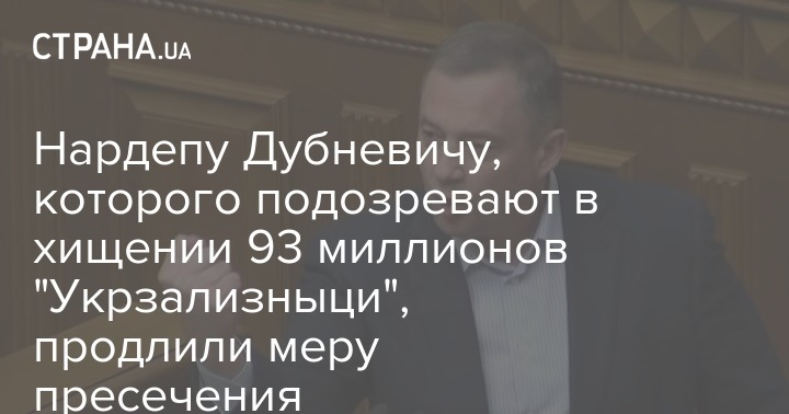 Подозреваемому в завладении средствами "Укрзализныци" в сумме более 93 млн народному депутату Ярославу Дубневичу Высший антикоррупционный суд (ВАКС) продлил меру пресечения. Срок действия его обязательств определен до 29 апреля 2020 года.