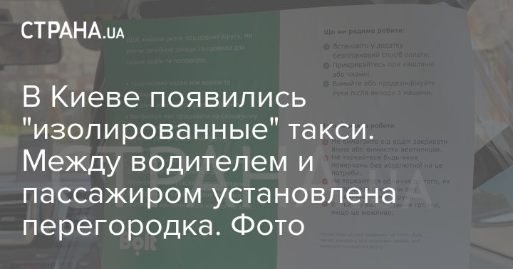 В больших городах Украины появились "изолированные" такси Bolt. Между водителем и пассажиром установлена перегородка. Фото:Страна