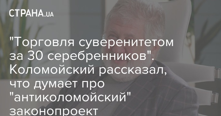 "Я бы назвал этот закон не "антиколомойским", а антиукраинским. Торговля суверенитетом и Конституцией за 30 серебренников, правда, очень дорогих", - заявил Коломойский.