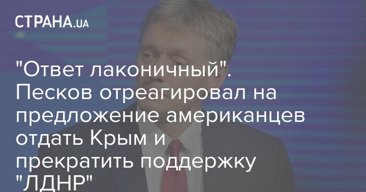 "Ответ лаконичный". Песков отреагировал на предложение американцев отдать Крым и прекратить поддержку "ЛДНР"