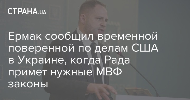 Ермак сообщил временной поверенной по делам США в Украине, когда Рада примет нужные МВФ законы