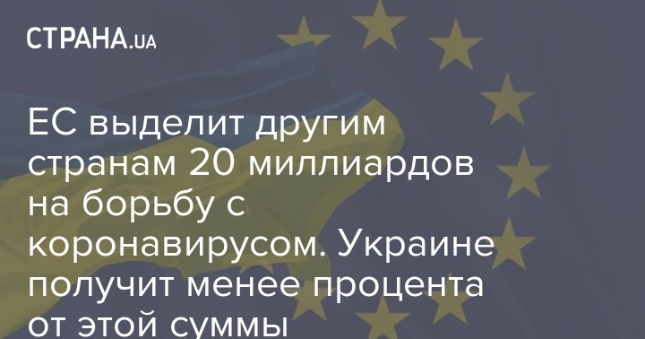 Киеву ЕС перечислит 190 миллионов евро (или 0,95% от 20 миллиардов). Эти деньги должны пойти на покупку медицинского оборудования, поддержку уязвимых слоев населения и кредиты малому бизнесу.