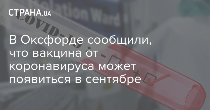 В Оксфорде сообщили, что вакцина от коронавируса может появиться в сентябре