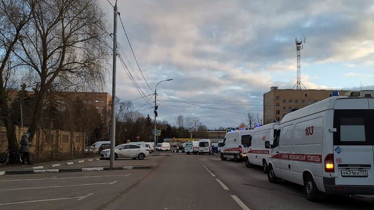 Похожие снимки публикуют и другие пользователи Facebook. Так, Светлана Островская поделилась кадрами того, как очередь машин скорой помощи выстроилась перед больницей в Химках - городе в Подмосковье.