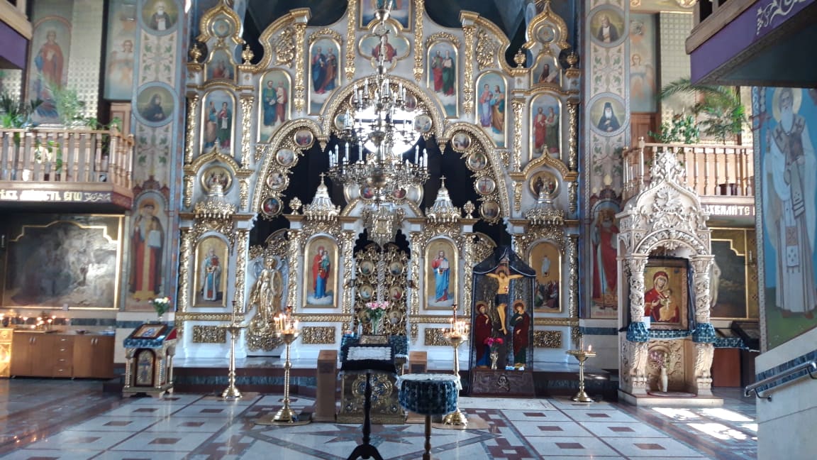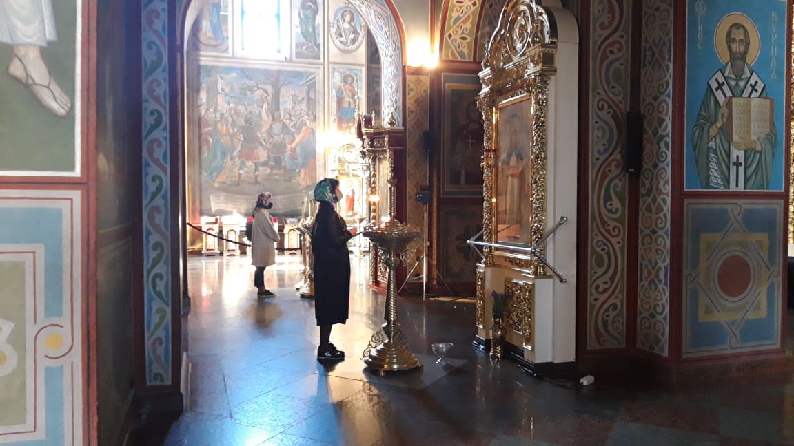 Внутри храма находилось два человека, еще восемь во дворе. Кто-то сидел на скамейке, кто-то прогуливался по территории храма - практически все без защитных масок. На территории храма не было информации о правилах которых должны придерживаться прихожан на время действия карантина. Наблюдая более получаса, корреспондент "Страны" не заметил большого количества людей.