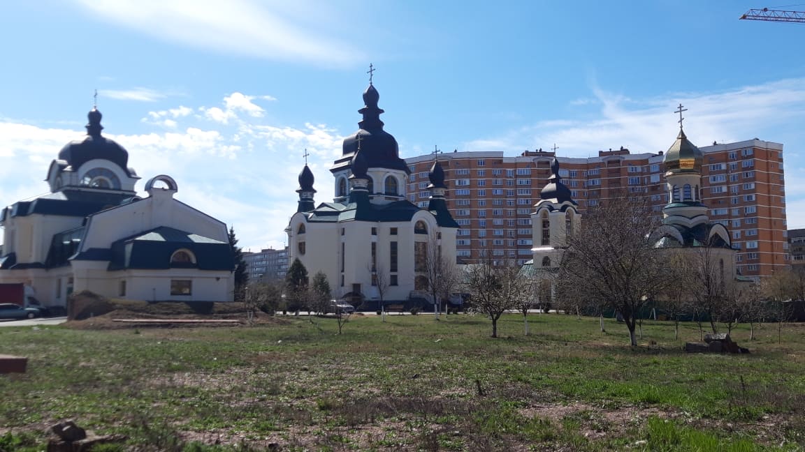 Храм святых новомучеников и исповедников Русских, был уже закрыт, но сегодня работал. В 07:00 в нем провели богослужение в связи с празднованием Вербного воскресения.