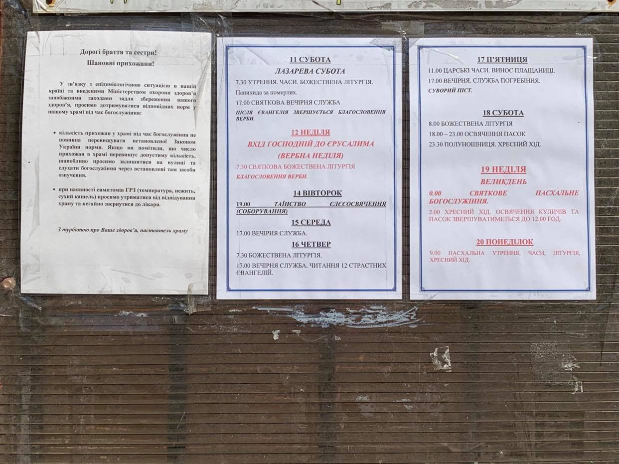 В церкви на Позняках в Киеве людей было немного, но церковь была открыта. Служба прошла в 7:30 утра. В храме было предупреждения о количестве людей в церкви.