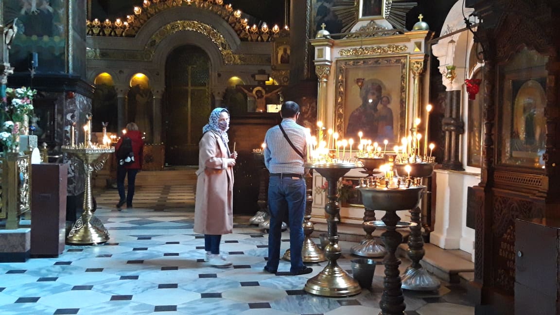 В столице люди также довольно умеренно посещали храмы, пытаясь соблюдать и дистанцию, и масочный режим.