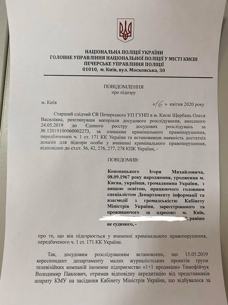 Сотруднику Кабмина вручили подозрение за препятствование журналисткой деятельности. Фото: nsju.org