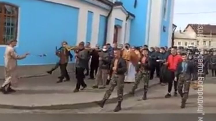 Чеканным шагом, в камуфляже и без масок. Появилось видео крестного хода УГКЦ, из-за которого на священника завели уголовное дело