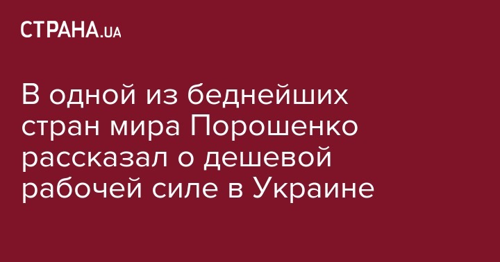 В одной из беднейших стран мира Порошенко рассказал о дешевой рабочей силе в Украине